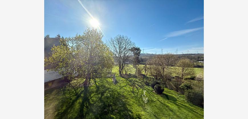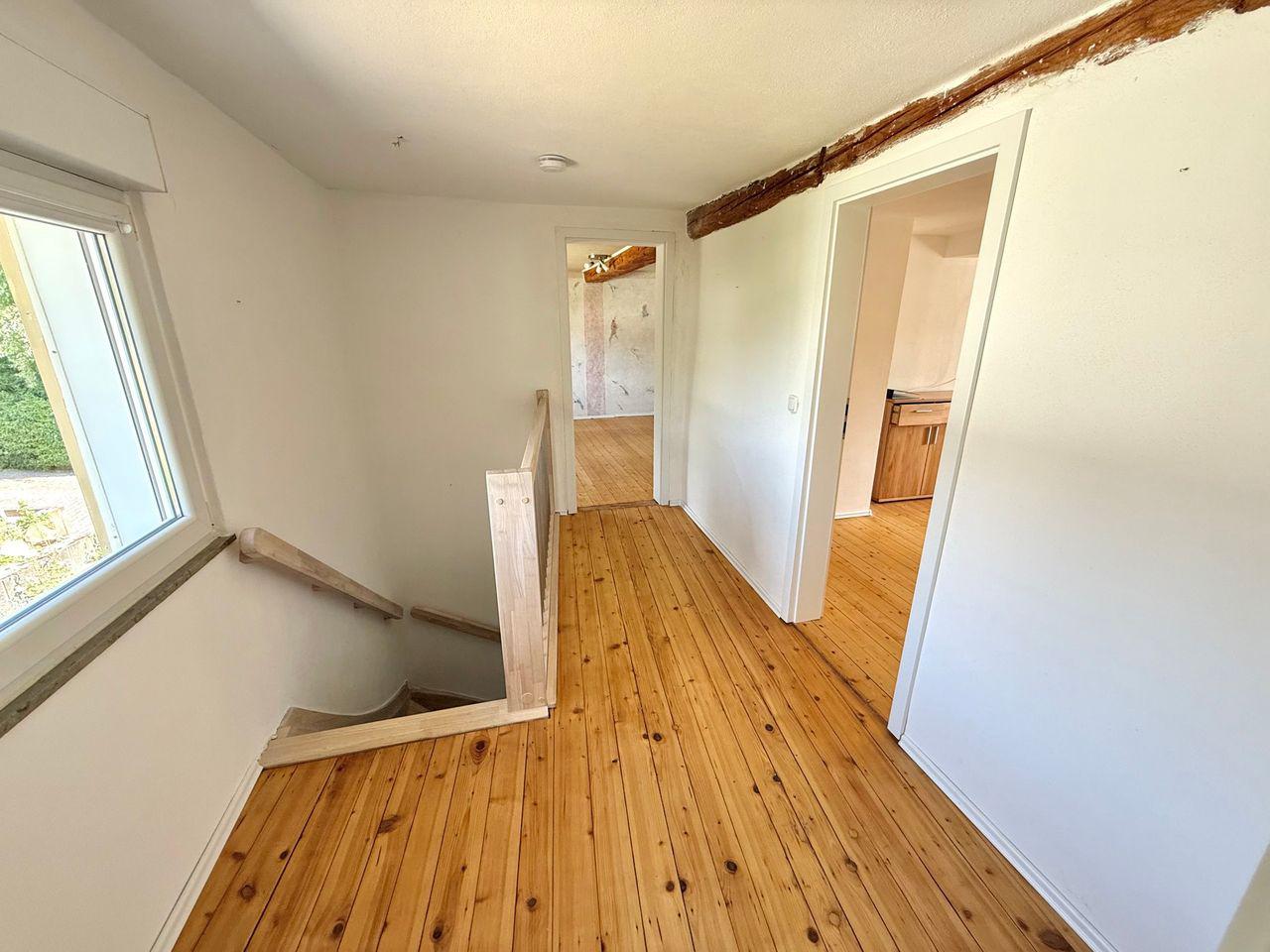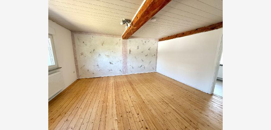 Das ehem. Fachwerkhaus aus ca. 1873 verbindet historischen Charme mit modernem Wohnkomfort & bietet ca. 152 m² Wfl.. Das Grundstück mit rd. 1.816 m² liegt am Ortsrand und eröffnet einen unverbaubaren Weitblick. Es verfügt im unteren Bereich über eine abgetrennte Fläche mit Törchen und einem Hühnerstall - Tierhaltung ist ggf. nach Prüfung der örtlichen Vorgaben möglich. Das Haus wurde im Inneren bereits umfangreich saniert und überzeugt mit einem aufgearbeiteten Dielenboden. Im EG empfängt Sie ein einladender Eingangsbereich, der in die Wohnküche und das Wohn-/Esszimmer übergeht. Das Gäste-WC sowie das Duschbad wurden 2023 komplett erneuert und mit Fußbodenheizung ausgestattet. Der große Heizungsraum schafft zusätzlichen Stauraum. Im OG befinden sich drei Schlafzimmer sowie ein Wintergarten, der durch den Austausch der Fenster weiter aufgewertet werden kann. Ein weiteres, ebenfalls in 2023 erneuertes Bad mit Whirlpool und Fußbodenheizung sorgt für besonderen Komfort. Der Speicher ist ausbaubar. Ein Holzschuppen und eine Garage bieten zusätzliche Nutzfläche.