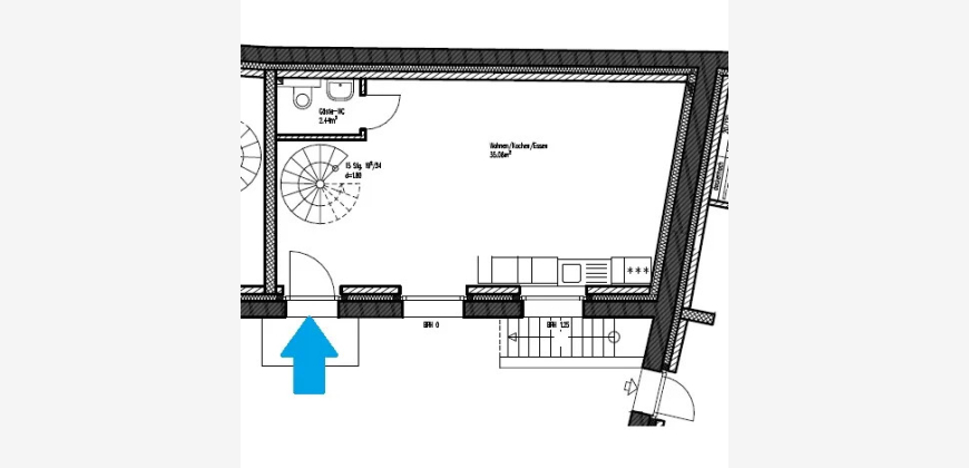 - Erdgeschoss: Wohnen und Kochen vereint in einem Raum