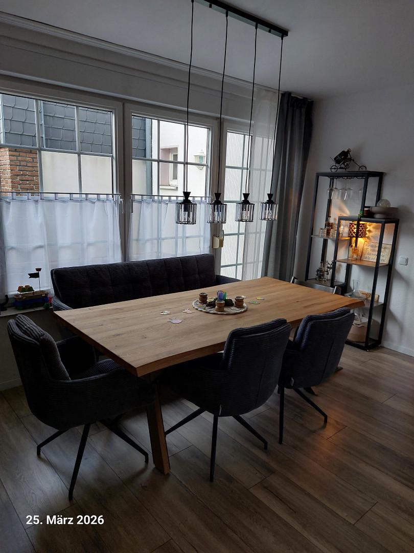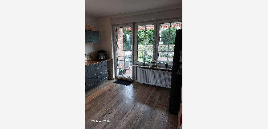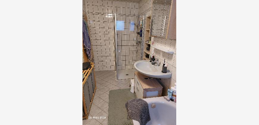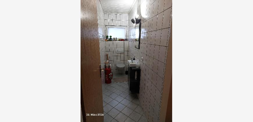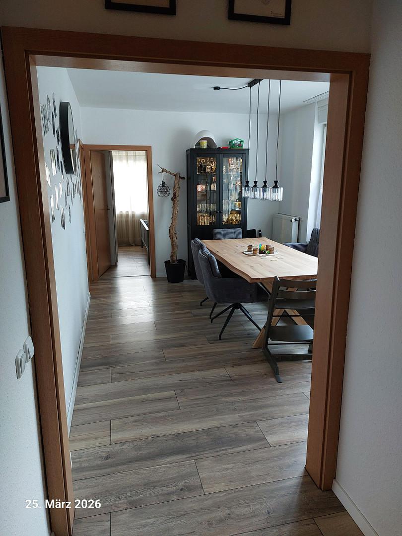 Der Laminatboden zeigt keine Gebrauchsspuren. Gäste WC und Badezimmer sind mit Fliesen ausgelegt.