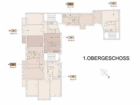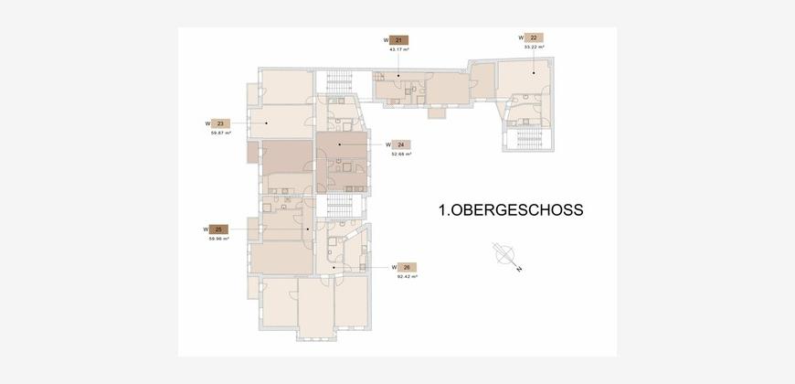 •Wohnungsgrößen: 27 Einheiten von 31 m² bis 92 m²