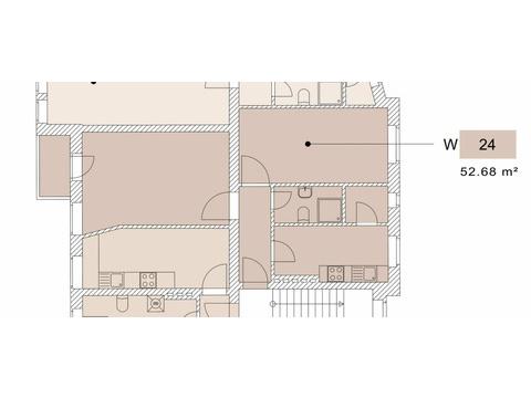 Wohnung Nr. 24 im Vorderhaus, 1. OG. Mit Sonnenbalkon.