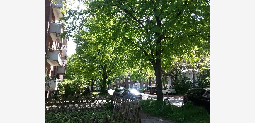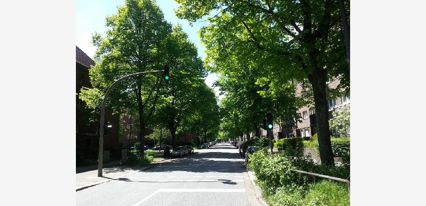 Die Wohnung liegt direkt auf der Stadtteilgrenze zwischen Barmbek und Dulsberg.