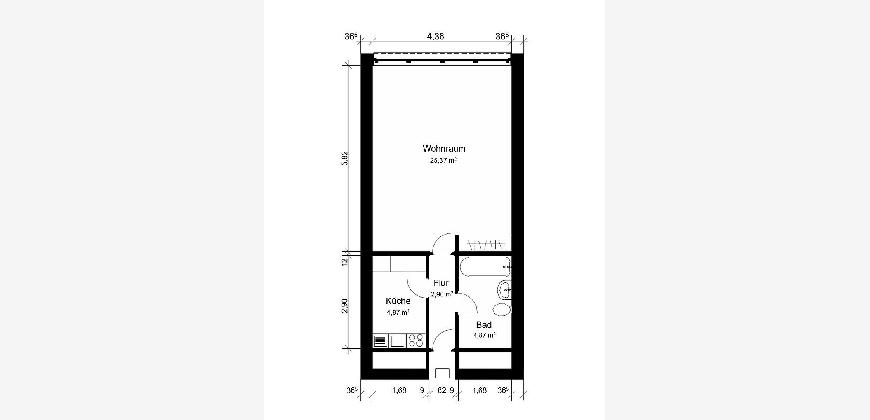 Die monatliche Miete von 1.280 Euro beinhaltet sämtliche Nebenkosten außer Strom. Das Appartement ist voll möbliert und sofort bezugsbereit.