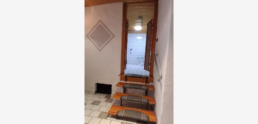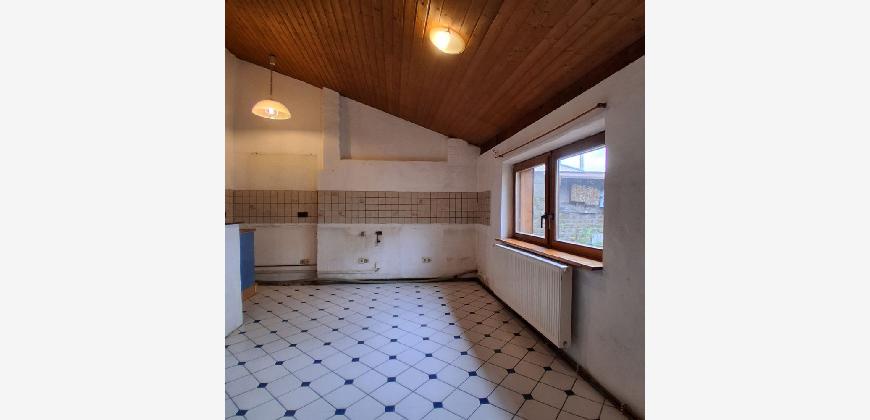 Großzügige Wohnküche, beheizbar mit Heizung oder Kaminofen. Innenhof mit mehreren Außenräumen und Außen-WC. Kleiner Kellerraum.