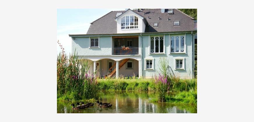 Eine besondere Ausstattungsnote dieser Wohnung ist der Zugang zu einem Gartenteich, der für Erfrischung sorgt. Perfekt für heiße Sommertage oder entspannende Wochenende, dieser Bereich wird schnell zu einem Ihrer Lieblingsplätze werden.