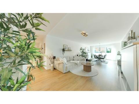 Auf rund 104 m² erwartet Sie eine großzügige Raumaufteilung mit drei hellen Zimmern. Mittelpunkt der Wohnung ist das einladende Wohnzimmer mit direktem Zugang zur Terrasse und dem eigenen Garten – ein perfekter Rückzugsort zum Entspannen. Ergänzt wird das Raumangebot durch ein gemütliches Schlafzimmer sowie ein weiteres Zimmer, das sich flexibel als Kinder-, Gäste- oder Arbeitszimmer nutzen lässt.