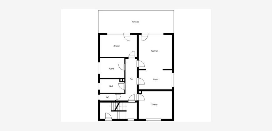 Im Erdgeschoss befindet sich eine großzügige Vierzimmerwohnung mit ca. 103 m² Wohnfläche. Diese Einheit wurde vor wenigen Jahren umfassend modernisiert und präsentiert sich in einem sehr guten Zustand. Sie verfügt über ein Tageslichtbad, ein separates WC, eine Küche sowie eine große Terrasse mit direktem Zugang zum Garten. Die monatliche Mieteinnahme beträgt derzeit 990 EUR, inklusive 40 EUR für eine zugehörige Einzelgarage.