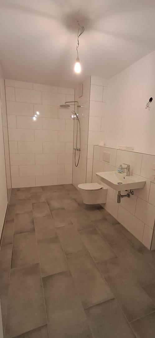 Moderne Sanitäreinrichtungen, ebenerdige Dusche, Handtuchheizkörper