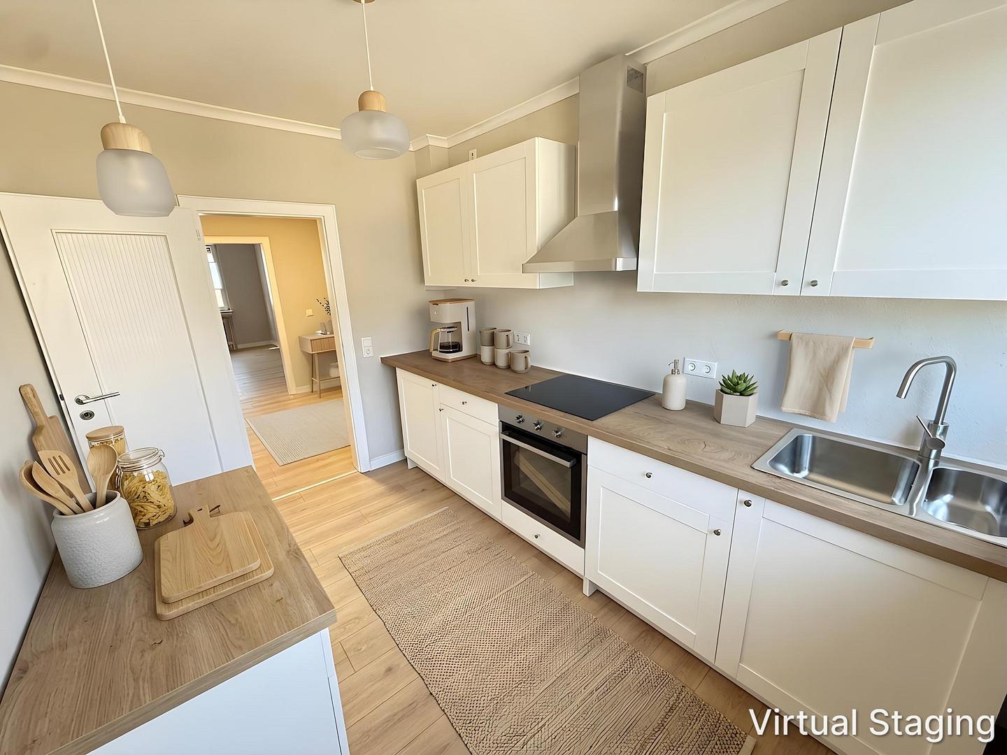 Die Wohnung wird ohne Möbel, bzw. unmöbliert vermietet. Die möblierten Bilder dienen lediglich der Illustration. Die Wohnung steht aktuell nach abgeschlossener Sanierung leer und kann flexibel besichtigt werden. Der aktuelle Zustand ergibt sich aus den Bildern. Makleranfragen unerwünscht! Nach § 7 UWG sind unaufgeforderte Kontaktaufnahmen durch Makler ohne ausdrückliche Einwilligung des Empfängers verboten!