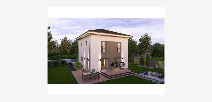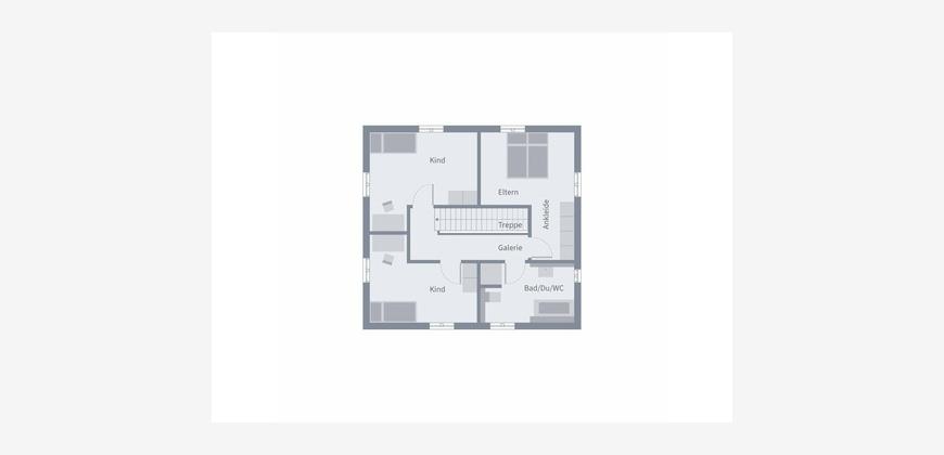 Die Stadtvilla 10.2 mit 135 m² verbindet modernes Wohnen mit einem Gefühl von Zuhause. Im Erdgeschoss öffnet sich der großzügige Wohnbereich - hell, offen und lebendig. Die Treppe steht dabei im Mittelpunkt: Raumtrenner und Gestaltungselement zugleich, das dem Zuhause Charakter verleiht. Hier wird gekocht, gelacht und gelebt. Praktisch ergänzt durch ein Gäste-WC und den Hauswirtschaftsraum, der den Alltag leichter macht. Im Obergeschoss warten Rückzugsorte für die ganze Familie - ein Elternzimmer mit Ankleide, zwei Kinderzimmer voller Ideen und ein Familienbad, das morgens wie abends zum Wohlfühlort wird.