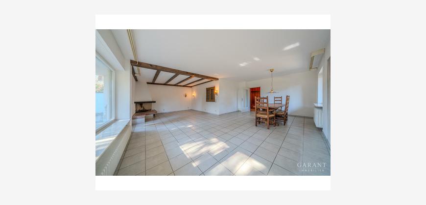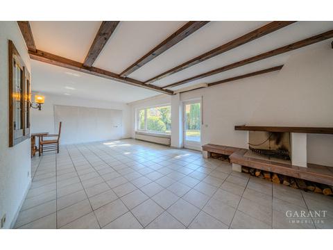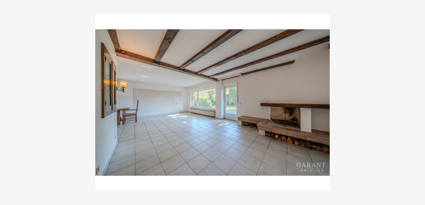 Bereits beim Betreten wird die angenehme Weite des Hauses spürbar. Der großzügige Wohn- und Essbereich bildet das Herzstück des Erdgeschosses. Große Fensterflächen sorgen für eine helle, freundliche Stimmung, während der offene Kamin dem Raum zusätzliche Behaglichkeit verleiht. Von hier aus gelangen Sie direkt auf die Terrasse und in den großen Garten.