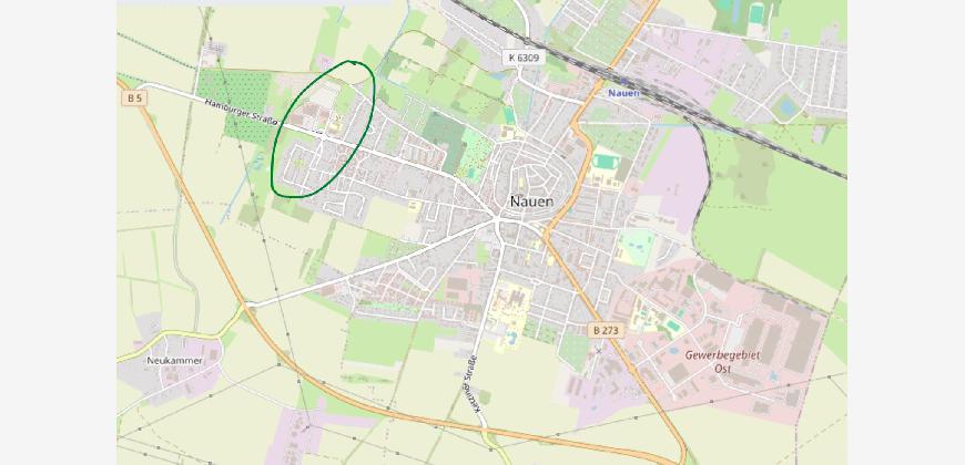Am Stadtrand von Nauen in einer Eigenheimsiedlung liegt unser Haus. In der Nachbarschaft befinden sich Supermärkte und ein Kindergarten. Der DB-Bahnhof, für Berlinpendler ein günstiges Verkehrsmittel, liegt 1,5 km und die nächste Bushaltestelle (Ortsbus und Überlandbusse) 300 m entfernt. Die Stadt Nauen verfügt über zahlreiche Schulen, Arztpraxen, die Havellandklinik, unterschiedliche Restaurants, Jugendklubs, Sportstudios, das Stadtbad, die Freilichtbühne - und ist bekannt für die jährliche Hofweihnacht am 3. Advent. Nauen hat einen gewachsenen Stadtkern aus dem Mittelalter, wächst an der Peripherie jedoch nach Süden und Norden, da die Fahrt nach Berlin mit dem Auto nur eine halbe Stunde beträgt.