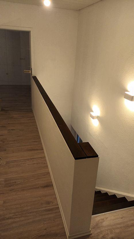 Bad mit Badewanne, Bad mit Dusche, Marmorboden im unteren Flur, Massivholztreppe, helles Eichenlaminat, neue, vollausgestattete, weiße Einbauküche, teilweise elektrische Jalousien, separater Waschmaschinen- und Trockneranschluss, separate Strom-, Wasser- und Heizkostenverbrauchsablesung, Glasfaseranschluss
