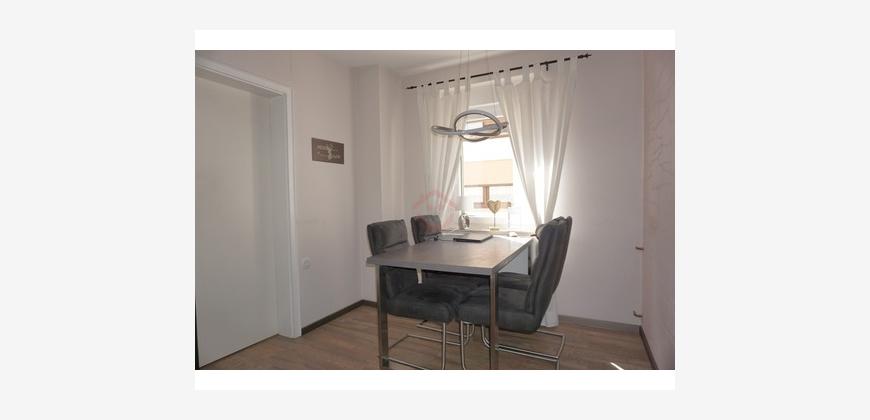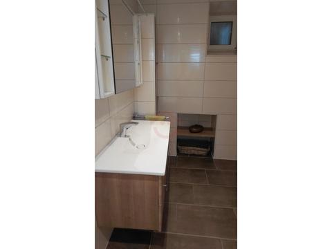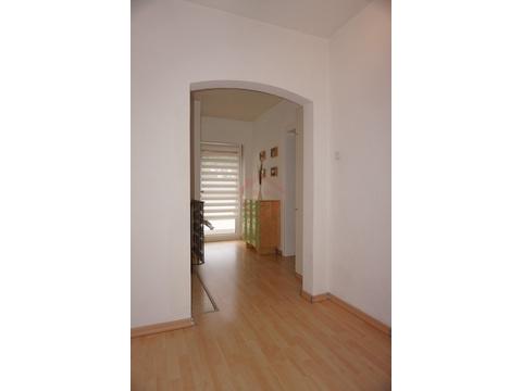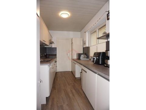 Das vermietete Nebengebäude, umgebaut im Jahr 1995, befindet sich auf der rechten Seite des Grundstückes. Die Eingangstür führt in die zentral gelegene, großzügig gestaltete Diele. Rechtsseitig befindet sich die geschlossene Küche, welche mit einer aus Einbauküche und einem Essbereich ausgestattet ist. Auf der linken Seite folgen das Tageslicht-Dusch- und Wannenbad, sowie ein Abstellraum mit Waschküche.