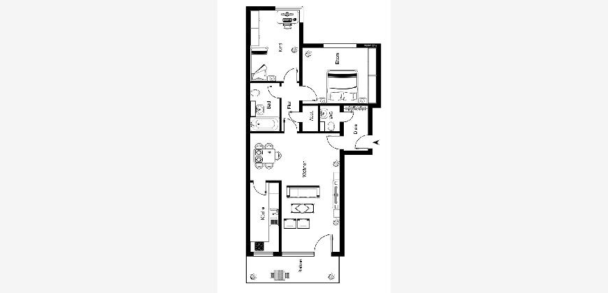 Die Wohnung befindet sich aktuell in der Kernsarnierung. Aktuelle Fotos folgen nach Fertigstellung. Der veröffentlichte Grundriss zeigt die durchdachte Raumaufteilung.