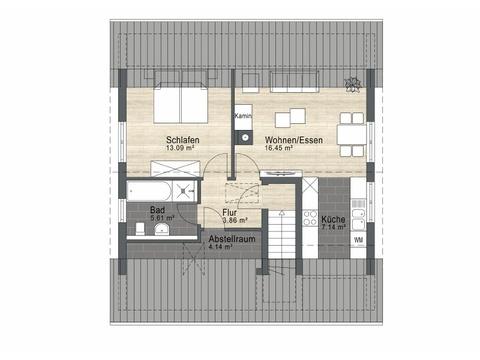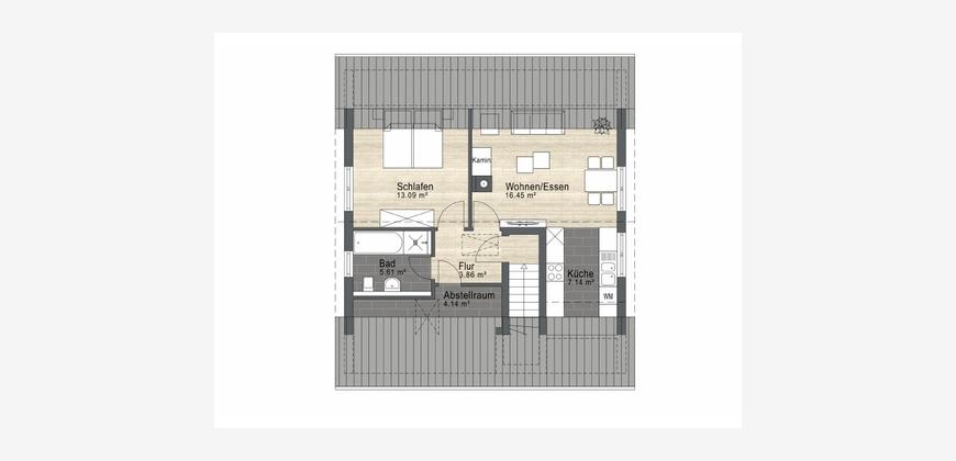 Satteldach, zimmermannsmäßig abgebundener Dachstuhl, Betondachstein