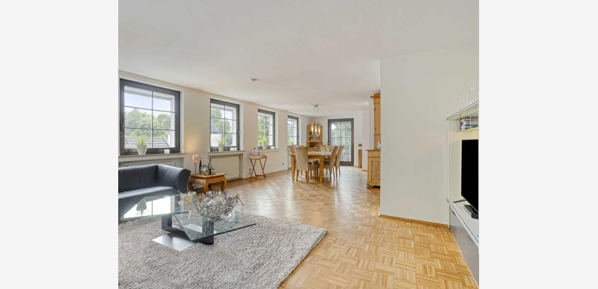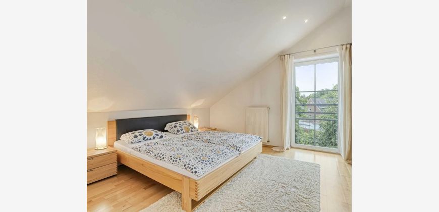 Diese großzügige 4-Zimmer-Maisonettewohnung mit separatem Hauseingang und ca. 144 m² Wohnfläche erstreckt sich über das 1. Obergeschoss und das im Jahr 2000 neuerrichtete Dachgeschoss eines ruhigen 2-Parteienhauses (Baujahr 1962) und bietet ein lichtdurchflutetes, familienfreundliches Zuhause mit durchdachter Raumaufteilung. Ein ca. 900 m² großer Garten zur alleinigen Nutzung und eine Doppelgarage sowie drei weitere Außenstellplätze ergänzen dieses Angebot.