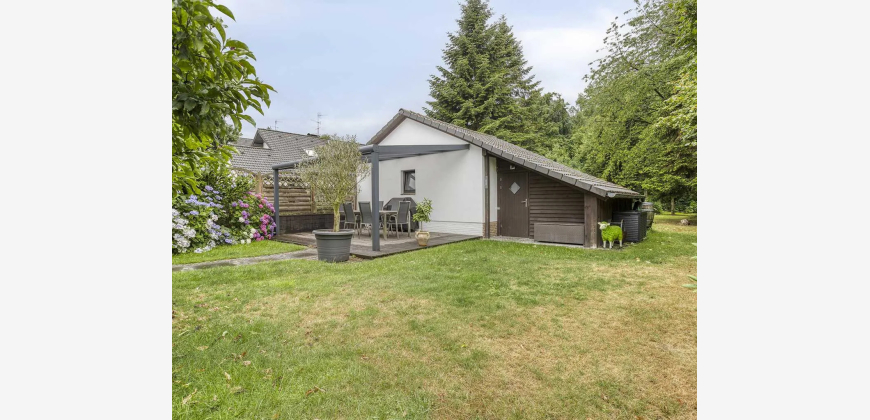 Abgerundet wird das Angebot durch zwei separate Kellerräume, ein auf Betonboden stehendes Holzgartenhaus mit Dachpfannen zur praktischen Lagerung von Gartenzubehör oder Terrassenmöbeln sowie ein zusätzliches Metallhäuschen.