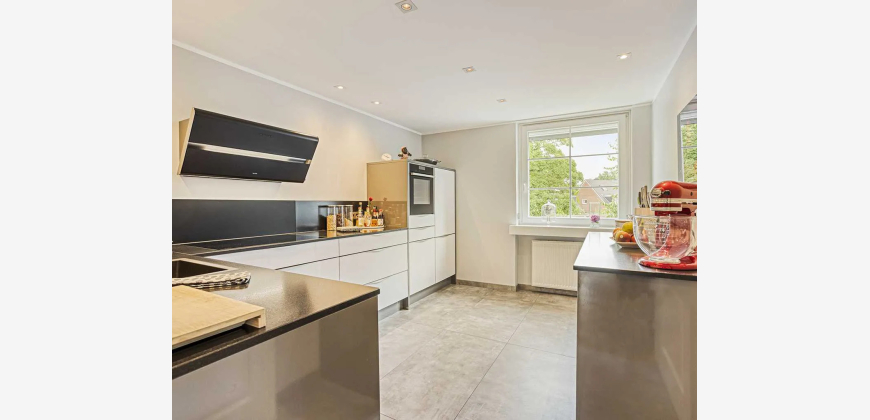 Der zentrale Lebensmittelpunkt der Wohnung ist der weitläufige Wohn- und Essbereich im 1. Obergeschoss mit direktem Zugang zum großen Westbalkon. Von hier genießt man einen herrlichen Blick ins Grüne. Ein Gäste-WC sowie ein großzügiger Hauswirtschaftsraum und die Küche runden die Etage ab.