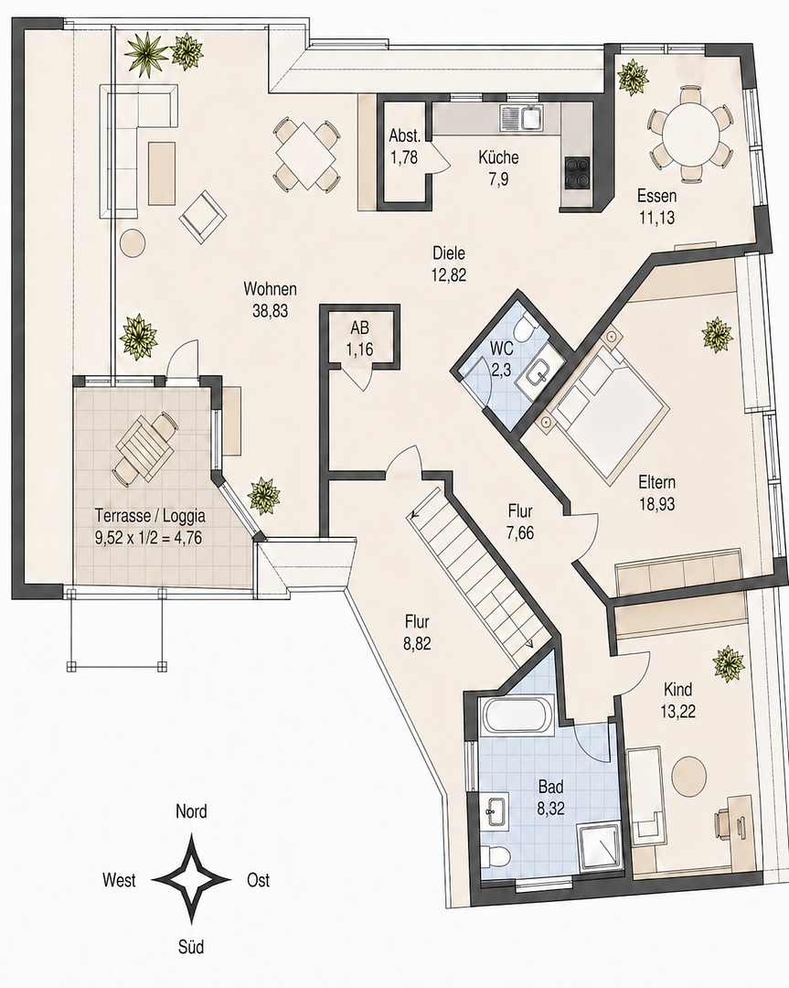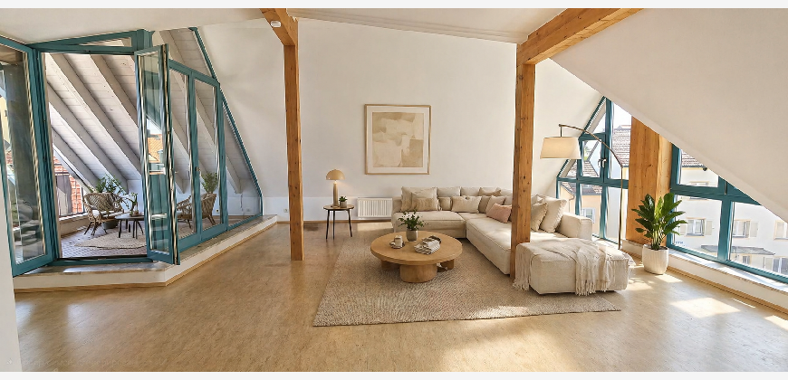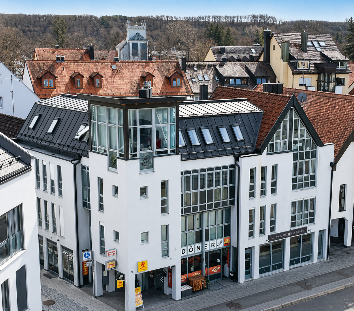 Die Wohnung liegt zentral in Fürstenfeldbruck, direkt am Viehmarktplatz. Der Viehmarktplatz wurde 2025 umgebaut und bildet heute einen wichtigen Treffpunkt im Herzen der Stadt. Mit Bäumen, Wasserspielen, dem grünen Markt und dem Christkindlmarkt im Winter ist das Umfeld lebendig, aber dennoch angenehm städtisch.