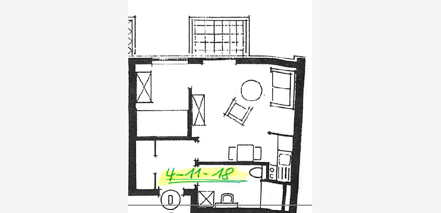 35 m² Wohnfläche, 1 Zimmer mit abgetrenntem Schlafbereich