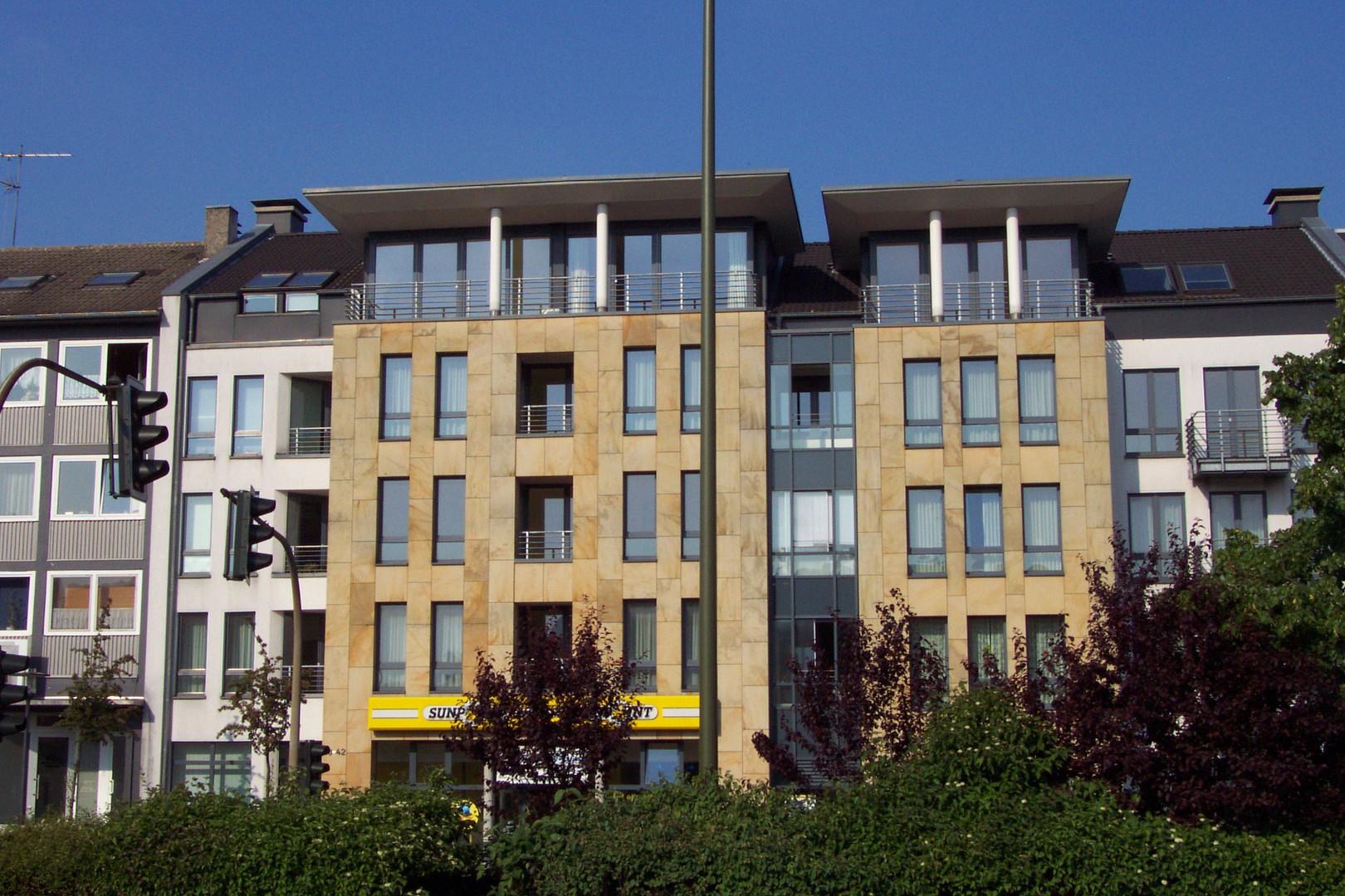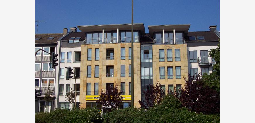 Direkt vor dem Hauseingang befindet sich ein ampelgesteuerter Fußgängerüberweg zur innerstädtischen Fußgängerzone. Dort erreichen Sie Einkaufsmöglichkeiten, Wochenmarkt, Ärzte, Apotheken, Cafés und Gastronomie in wenigen Minuten.
