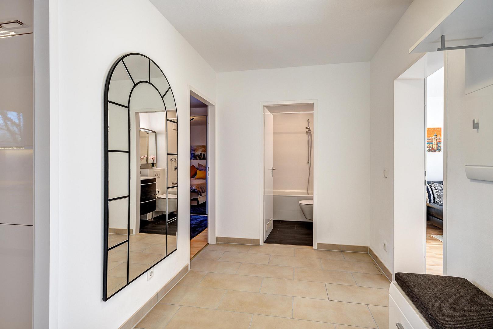 • Lidl, Rewe only about 10 minutes away on foot