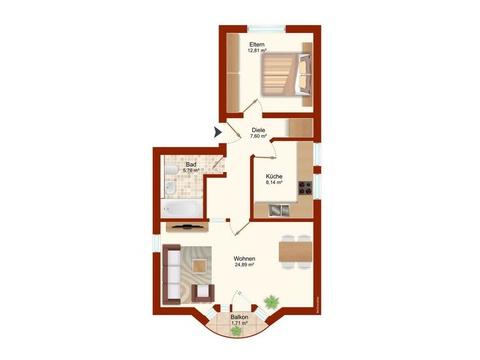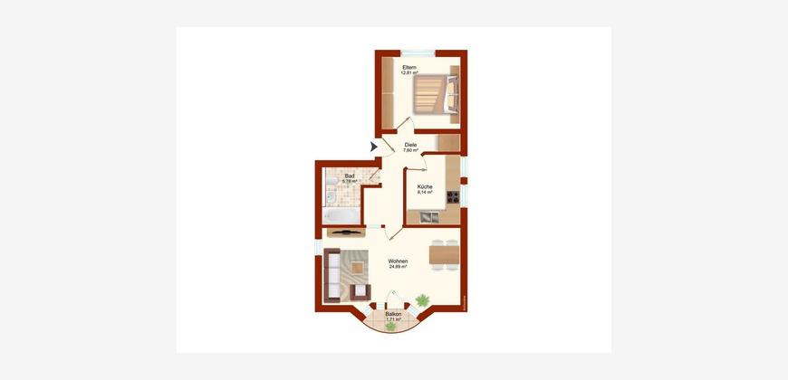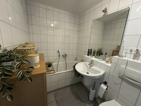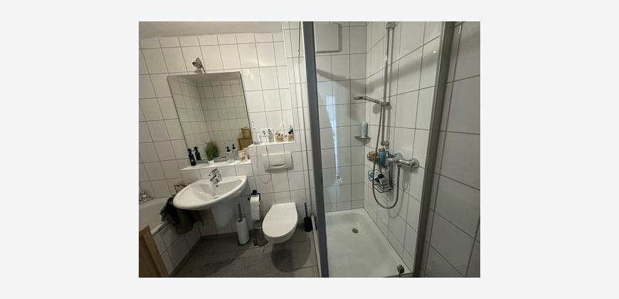 Im 1. Obergeschoss eines modernen Mehrfamilienhauses befindet sich diese großzügige 2-Zimmer Wohnung. Einkaufsmöglichkeiten befinden sich in direkter Nähe und sind fußläufig zu erreichen. Die Wohnung ist aufgeteilt in Wohn-/Esszimmer mit Zugang zum Balkon, Küche (monatlich 35,00 €), Schlafzimmer, Bad mit Wanne und WC. Genug Stauraum bietet Ihr zusätzlicher eigener Kellerraum. Im Keller befindet sich ein Waschraum, hier besteht die Möglichkeit Waschmaschine und Trockner unterzubringen. Das Auto stellen Sie auf Ihrem eigenem Stellplatz (monatlich 20,00 €) ab.