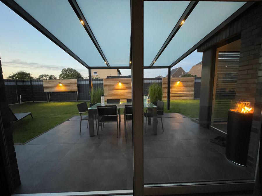 Terrassenüberdach mit Beleuchtung und VSG Glas