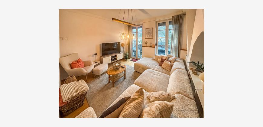 Diese schöne Wohnung verfügt über ein großes Wohn- und Esszimmer mit offener Einbauküche, ein Durchgangszimmer und ein Schlafzimmer, ein Bad mit Wanne und Dusche, sowie einen sehr praktischen Abstellraum.