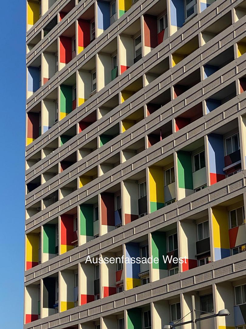 Das Corbusierhaus steht in Berlin-Wertend, nicht weit vom Olympiastadion, abseits vom öffentlichen Verkehrsraum eingebettet in ein 63000qm großes Gelände, das den Bewohnern zur Verfügung steht.