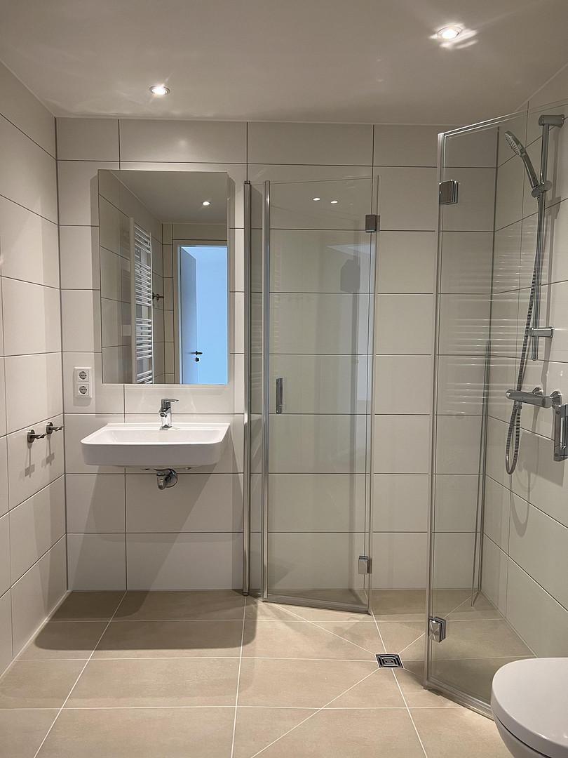 • Fliesen in den Bädern, Vinylboden in Wohn- und Schlafräumen