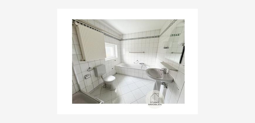 Das moderne Bad empfängt Sie mit Tageslicht, einer Dusche und einer Badewanne; Waschbecken und Duschkabine wurden neu eingebaut. Ergänzt wird das Raumangebot durch ein separates Gäste-WC sowie einen praktischen Abstellraum innerhalb der Wohnung.