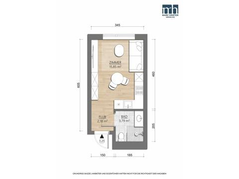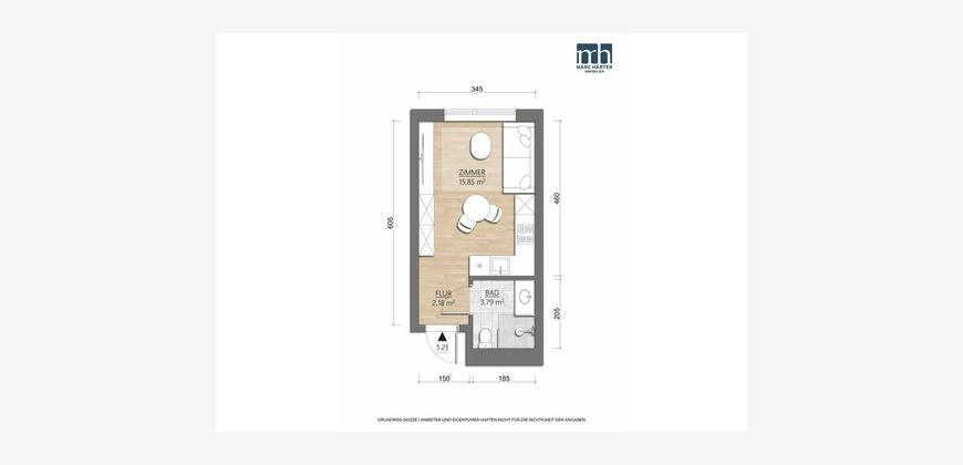• Apartmentfläche: ca. 21,82 m²