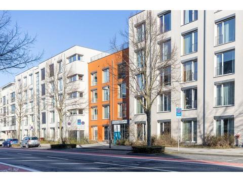 Die Umgebung ist geprägt von einer ruhigen, gepflegten Wohnstruktur mit gleichzeitig urbanem Charakter. Öffentliche Grünflächen, Spazierwege und Aufenthaltsbereiche befinden sich in fußläufiger Entfernung und tragen zu einer angenehmen, lebenswerten Atmosphäre bei.