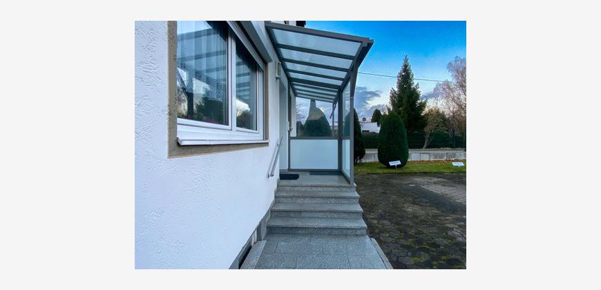 Sauberer, hochwertiger Eingangsbereich mit Glasüberdachung