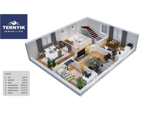 Die im Exposé genannten Wohn- und Nutzflächen basieren auf Angaben des Verkäufers sowie vorliegenden Grundrissplänen. Eine verbindliche Flächenberechnung nach WoFlV oder DIN 277 liegt nicht vor und kann bei Bedarf durch einen Fachplaner erstellt werden. Alle Grundrisse dienen der Veranschaulichung und sind nicht maßstabsgetreu.