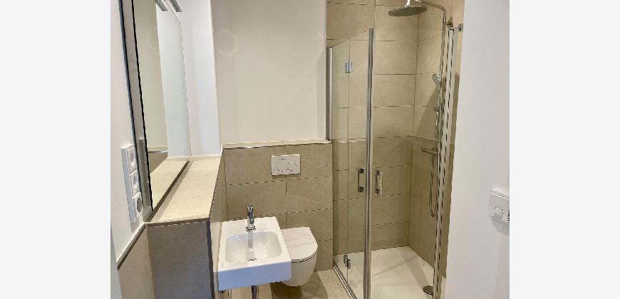- Hochwertige Bäder mit Feinsteinfliesen, beleuchteten Spiegeln, Downlights und Internet Badradio