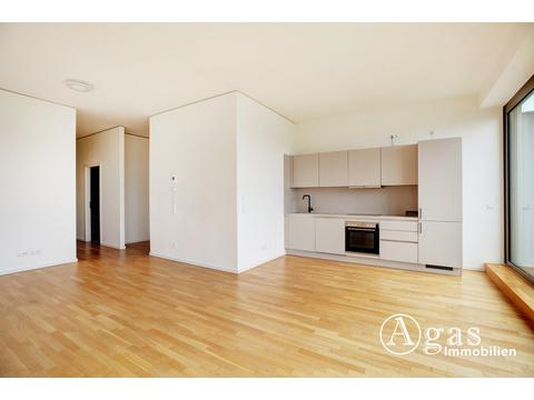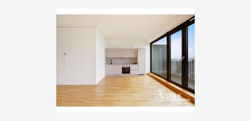 Hochwertiges Eichenparkett mit Fußbodenheizung, eine großzügige Fensterfront mit Balkon und die schicke Einbauküche...
