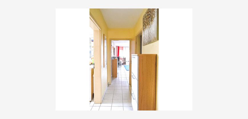 Im ersten OG gelegen, verfügt die helle Wohnung über zwei Kinderzimmer, ein Elternschlafzimmer sowie einen großen Wohn-/Essbereich. Hier befindet sich der Ausgang zum überdachten Balkon, der durch seine Größe besticht und viele Monate des Jahres eine tolle Erweiterung zum Wohnbereich darstellt. Das Badezimmer bietet Tageslicht, Badewanne, Bidet und WC und hinter der Tür einen Waschmaschinenanschluß. Gerade für Familien ein riesiges Plus, entfällt doch das lästige Wäscheschleppen durch das Treppenhaus. Weiterhin gibt es ein Gäste-WC mit dem zusätzlichen Komfort einer Dusche. Die großräumige Küche ist separiert und mit hellen, klassisch-modernen und voll funktionstüchtigen Einbaumöbeln ausgestattet. Selbstverständlich darf bei diesem fantastischen Immobilienangebot auch ein großer, trockener Kellerraum sowie eine Garage für Ihren Pkw nicht fehlen!