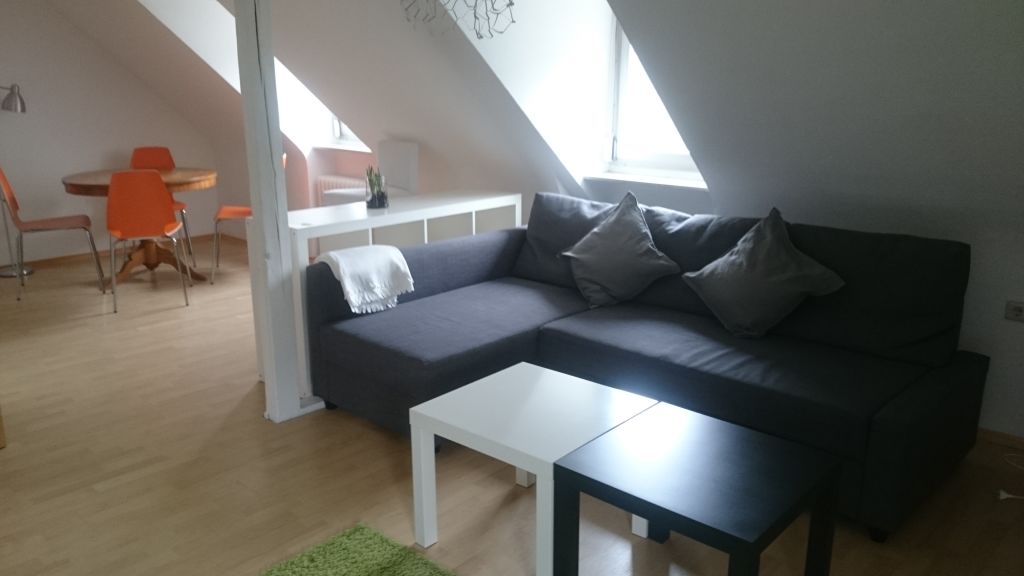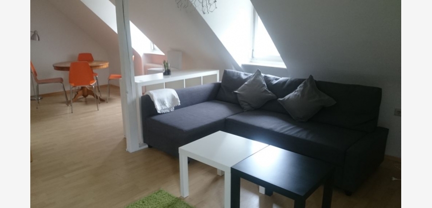 The fully furnished and equipped, sunny 2-room apartment is located in the attic of a well-kept apartment building in a quiet residential area in 70186 Stuttgart in the immediate vicinity of the forest.The layout of the apartment is as