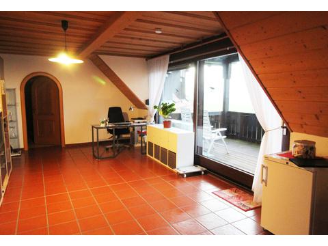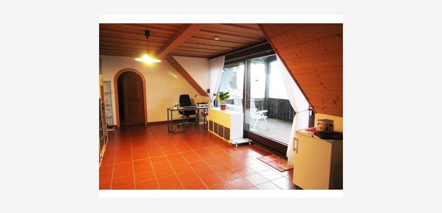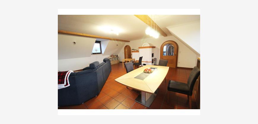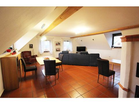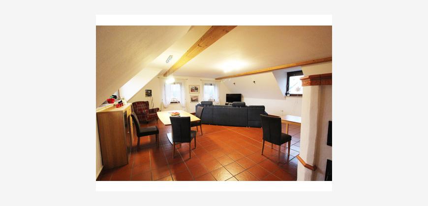 Diese ungewöhnliche Wohnung am Ortsrand ist umgeben von Wiesen und naheliegendem Wald. Ruhesuchende und Naturliebhaber werden hier ihr neues Zuhause finden.