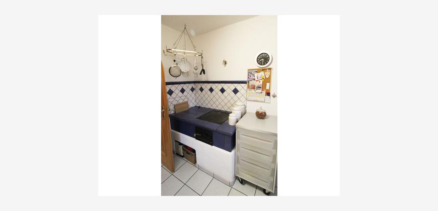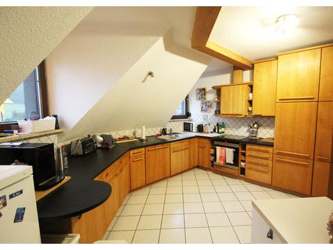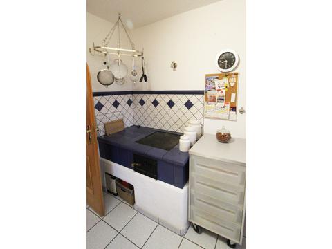 In der Einbauküche wurden die Elektrogeräte zwischen 2021 und 2025 bereits erneuert. Auch in diesem Raum befindet sich ein überaus geschmackvoller Holz-Koch-Ofen, der sicher das Herz jeder Hausfrau höher schlagen lässt.
