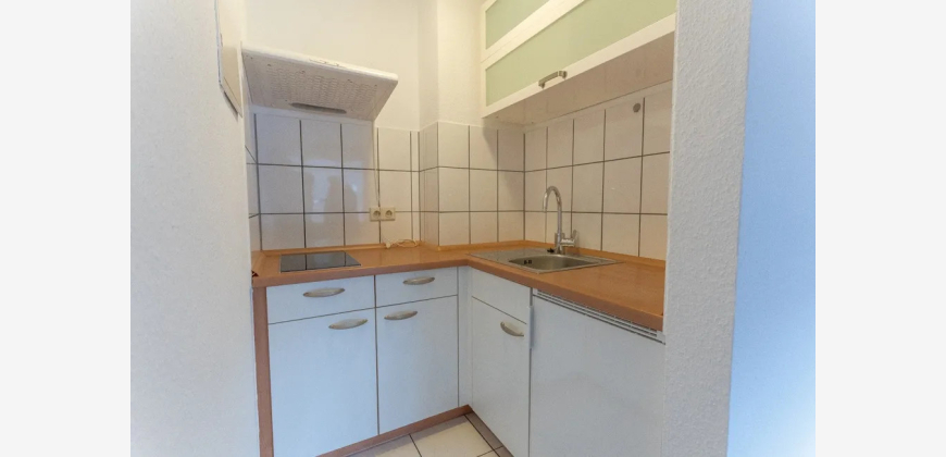Angrenzend liegt eine kompakte Kochnische, die mit einer funktionalen Einbauküche ausgestattet ist und alles für den täglichen Bedarf bereithält.
