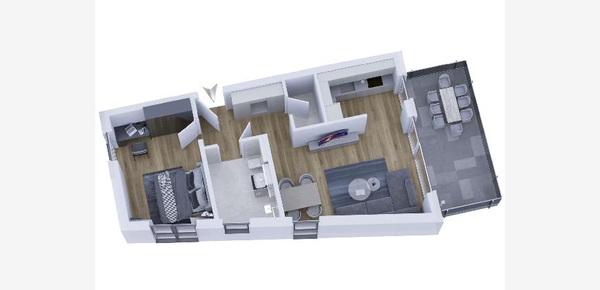 Die ca. 62 m² große 2-Zimmer-Wohnung befindet sich im Erdgeschoss.