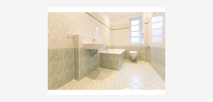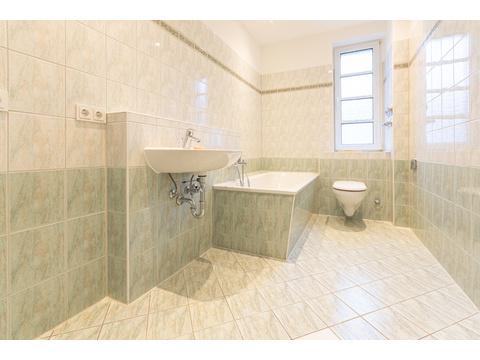 Das Tageslichtbad verfügt über eine Badewanne und den Waschmaschinenanschluss.