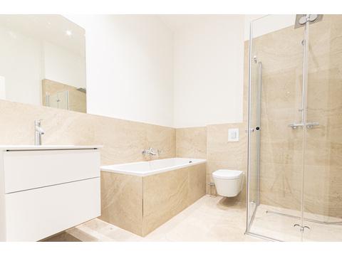 Die Wohnung ist mit hochwertigem Echtholzparkett und einer angenehmen Fußbodenheizung ausgestattet. Die offene Küche fügt sich ideal in das offene Wohnkonzept ein und eignet sich perfekt für gemeinsame Stunden mit Familie und Freunden.