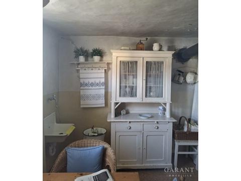 Alles andere als groß ist dieses Häuschen: In der Wohnebene befinden sich lediglich die urige Wohnküche, das Schlafzimmer mit angrenzendem Bad und die gute Stube, in der auch mit Holz geheizt werden kann. Nachtspeicheröfen garantieren eine konstante Wärme. Das Dachgeschoss bietet eine Ausbaureserve - vielleicht als Studiozimmer?