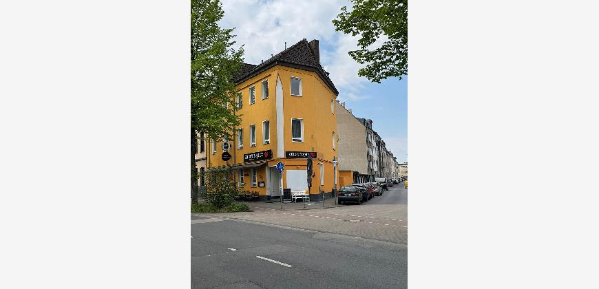 Im Erdgeschoss des Wohnhauses befindet sich ein Restaurant.