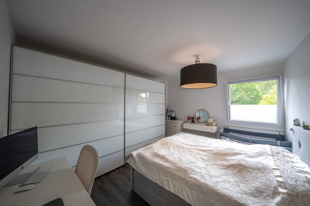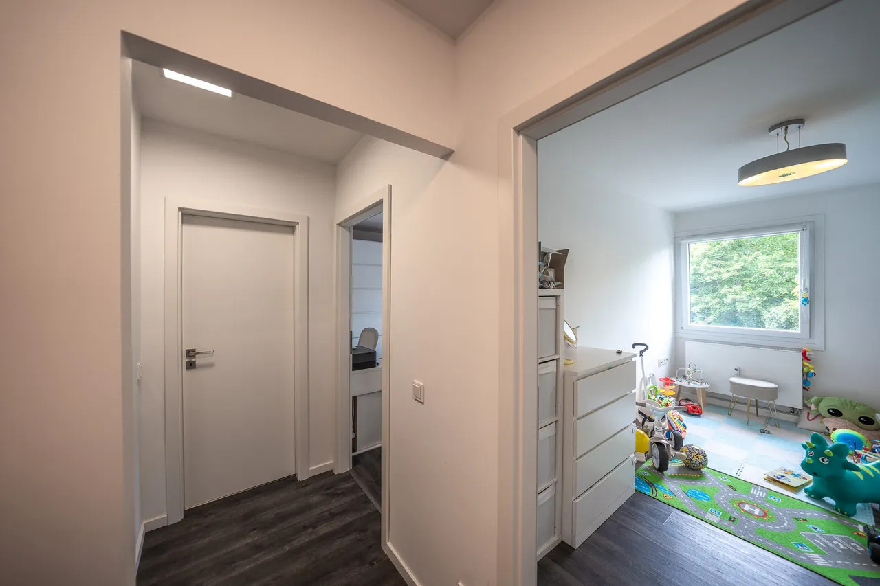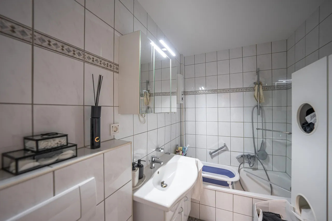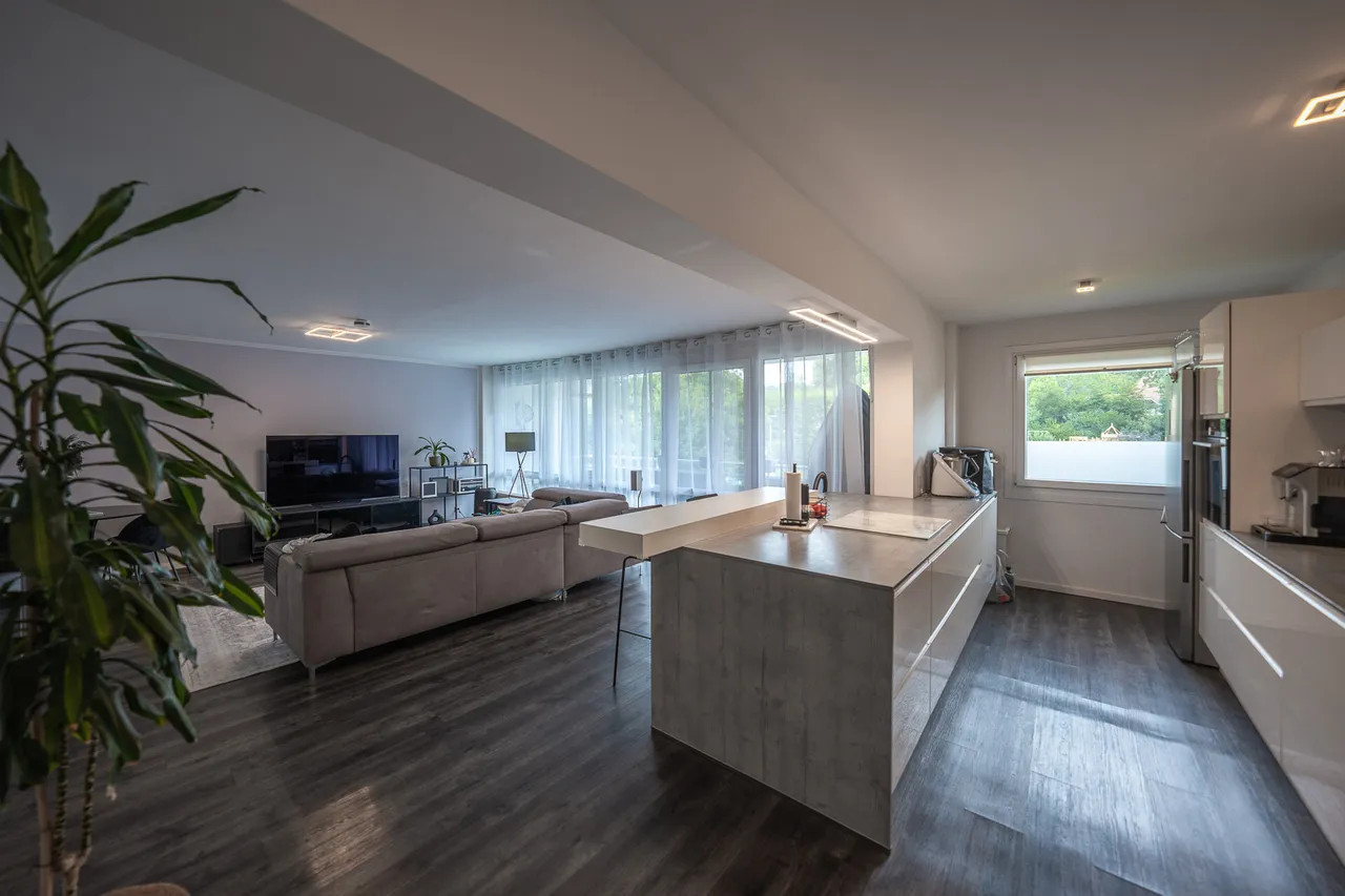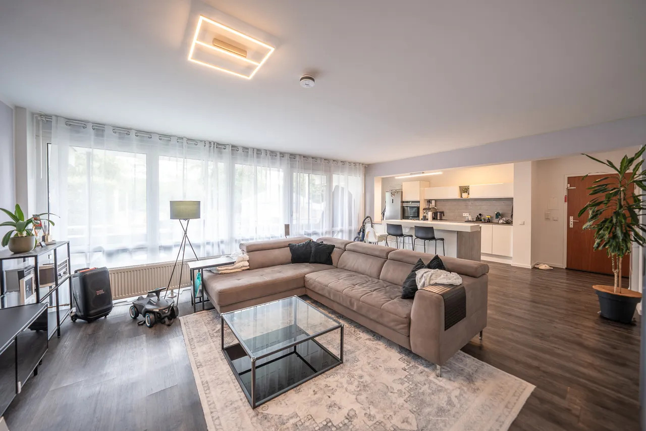 Mit einer Wohnfläche von rund 82 m² überzeugt diese Wohnung im 1. Obergeschoss durch einen durchdachten Grundriss und ein modernes, gepflegtes Ambiente. Schon beim Betreten öffnet sich der helle Wohn- und Kochbereich, der den Mittelpunkt des Zuhauses bildet. Große Fensterfronten lassen viel Tageslicht herein und schaffen eine freundliche Atmosphäre. Von hier aus gelangen Sie auf den Balkon, der an sonnigen Tagen zum Entspannen im Freien einlädt und den Wohnraum harmonisch erweitert. Die Wohnung verfügt über insgesamt drei Zimmer. Neben dem Schlafzimmer bietet ein weiteres Zimmer flexible Nutzungsmöglichkeiten – ob als Kinderzimmer, Gästezimmer oder als Büro für das Arbeiten von zu Hause. Das Badezimmer ist mit einer Badewanne ausgestattet und lädt zu erholsamen Momenten ein. Die moderne Einbauküche fügt sich stilvoll in den offenen Wohnbereich ein und macht gemeinsames Kochen und Genießen zu einem besonderen Erlebnis. Zeitgemäße Ausstattungsdetails wie pflegeleichte Kunststofffenster und eine effiziente Ölheizung aus dem Jahr 2016 sorgen für Wohnkomfort und Langlebigkeit. Abgerundet wird das Angebot durch den Personenaufzug im Haus, der den Zugang zur Wohnung im 1. Obergeschoss komfortabel und barrierearm gestaltet. Insgesamt präsentiert sich die Immobilie als ein helles und freundliches Zuhause, das sofort bezogen werden kann und vielseitigen Wohnansprüchen gerecht wird.